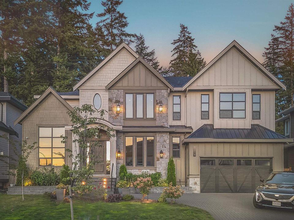This captivating craftsman-style custom home is a true showpiece. Striking curb appeal, meticulously crafted exterior and 6,300-sf+ of thoughtfully curated interior living. Inside, experience designer features such as a hidden powder room, 3-way fireplace and glass-enclosed den with vaulted ceilings. The transitional interior is defined by soaring 20-ft ceilings, radiant heating, high-end millwork and finishings throughout. The modern kitchen is equipped with built-in F+P appliances incl. beverage maker, gas cooking, designer hardware, walk-in pantry and a secondary prep kitchen. The main floor layout includes a second living area lounge, a mudroom and a fully ensuited bedroom suite. Enjoy a quiet treed yard and expansive covered deck in beautiful Brookswood.