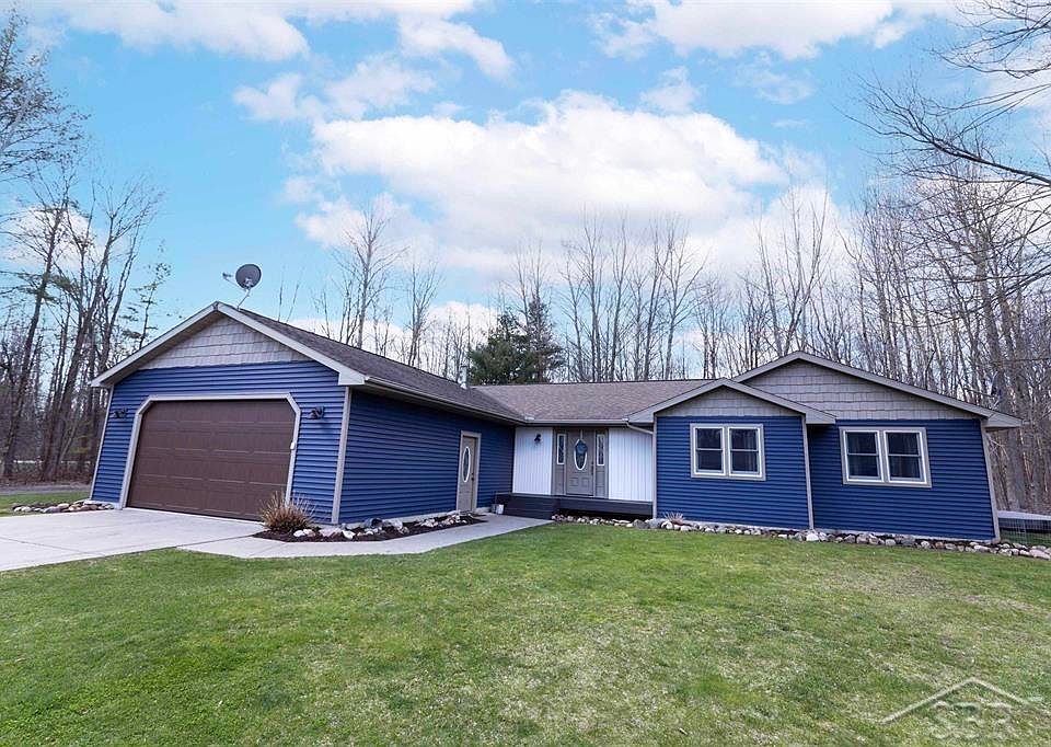 ONCE IN A LIFETIME ON SHAFFER! At first glance you'll see a nice 2414 sqft ranch style home with 3 bedrooms and 3 full bathrooms, but look further at the details and you'll see that this home sits on a beautiful wooded 90 acres, has a 40x30 pole barn and a gorgeous pond. The open floor plan will be great for entertaining and the kitchen has been completely updated with beautiful cabinetry and granite countertops. The great room features towering vaulted ceilings and a pellet stove. New siding in 2022 and a composite deck were added and a new 22kw Generac makes sure you'll never be without power. The drainfield and septic were replaced in 2024 ensuring you'll have no plumbing concerns for a very long time. All of this on your very own 90 acre parcel, teeming with wildlife and trails running throughout. The pond is 30 feet deep and has a variety of fish. I sure would hate to see you miss out on a once in a lifetime opportunity to own a property like this that is only 15 minutes from Midland!