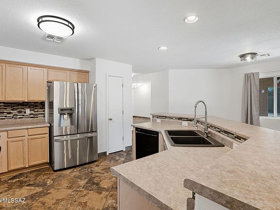 Experience desert living at its finest in Tucson Mountain Sanctuary; just minutes from the breathtaking trails and scenery of Tucson Mountain Park. From the moment you arrive, you'll appreciate this home's inviting curb appeal, tasteful desert landscaping, and convenient location. Spanning nearly 2,200 square feet, this thoughtfully designed home features a split floor plan with generous living spaces, high ceilings, and comfortable bedrooms. The kitchen offers plenty of counter space, storage and an open layout that's perfect for family gatherings or entertaining guests. At the end of the day, retreat to your private primary suite, complete with an en-suite bath, dual vanities, a spacious walk-in closet and direct access to the covered, secluded rear patio. The backyard includes a large slab area ideal for outdoor furniture, while the surrounding natural space awaits your personal touch and favorite plantings. Recent home updates and upgrades include recent exterior and brand-new interior paint, new plank flooring in the bedrooms and baths, modern fixtures, stylish ceiling fans, updated window coverings, and seamless gutters. Major improvements such as a roof replacement in 2023 and a high-efficiency, multi-stage HVAC system installed in 2020 ensure comfort and peace of mind for years to come. Don't wait! Schedule your private showing today and discover the perfect balance of modern comfort and desert charm!