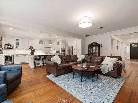 MOTIVATED SELLER - This unparalleled residence won't last at this price! Don't miss the rare opportunity to own the NICEST home in the neighborhood offering 3 bedrooms, 2 baths, and a den in the main home and a private one bedroom, one bath casita and a pool! Remodeled in 2020, this Ranch style property offers luxury living in the prestigious community of Crowne Hill. This 2825 sqft property greets you first with the secluded retreat perfect for work or guests, with its own private entrance, an en-suite bath with a single vanity and a walk-in shower and a dedicated AC zone for the entire casita. The main home greets you by tall ceilings, REAL WOOD floors, crown molding, wood finishings on all doorways and windows, custom paint, high baseboards, recessed lighting on high end dimmers, custom chandeliers, and cloth window coverings throughout. Also featured are two spacious secondary bedrooms, one with a shiplap accent wall and the other with tons of natural light. They share a separate den area perfect for entertaining or converting into a 5th bedroom as well as an upgraded bath with a dual vanity and a real tile shower/tub combo. The open floor plan offers a living and dining area bathed in natural light from large windows, wood accented walls and a high-end chandelier statement piece. The large Great Room is appointed with a black herringbone tiled gas fireplace and opens to the chef’s kitchen. The kitchen is finished with quartz counters, tile backsplash, Thermador appliances including a 6-burner stove, double oven, ceiling height white cabinets with black hardware, creative storage options, pantry, wine fridge and custom pendant lighting. The laundry offers storage, and a wash sink across from the primary bedroom. The suite offers the same upgrades as well as a private entrance to the yard and an attached bath upgraded with a shiplap wall, free standing tub, custom tile shower with frameless glass, and a large walk-in closet featuring custom built-ins. The 10,000 sqft oasis offers a CA room, new ceramic tile leading the way to the salt water, pebble tech lap pool, an oversized Jacuzzi and side yards landscaped with artificial turf, mature trees and tons of privacy with no rear neighbors. The home also features a 2-car garage, a new water heater and instant hot water heater, new AC with 4 zones, new irrigation system, and 2 pool pumps and new exterior paint. The community is part of the Temecula Valley SD, and within minutes to the wineries and shopping.