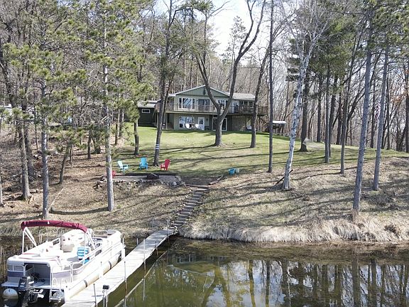 Come see this lovely lake home that is nestled in amongst the Pine and hardwood trees. The shared driveway will lead you into a private area where this home sits on 3.14 acres and is surrounded by a natural setting of mature trees. The home is south facing with 300+ feet of shoreline on beautiful Pine Lake. Inside the home you will find a vaulted main living area with a wood fireplace, Ponderosa Pine flooring, Douglas Fir beams, many large windows with generous nature light, 3-season porch. The newly remodeled kitchen boasts Granite countertops with a stunning leather finish & farmhouse sink. The lower level has a wood fireplace, large bedroom with stunning views of the lake, private bath & walk-in closet. The 3-car heated & insulated garage should top off your wish list. MAJOR UPDATES COMPLETED! Conv Septic 2013, Roof 2017, Water Heater 2018, Pressure Tank, AC & Furnace 2019, Drilled Well 2020, Kitchen & Many Appliances 2021. Welcome to the lake!