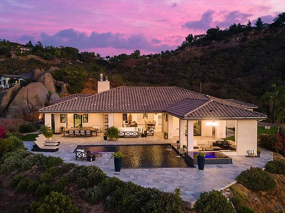 RESORT STYLE LIVING IN PRESTIGIOUS ALPINE RANCH ESTATES AND THIS SINGLE STORY 4 BEDROOM, 3.5 BATH HOME BUILT IN 2019 ON 4.11 ACRES IS ABSOLUTELY BEAUTIFUL AND FEATURES PANORAMIC VIEWS, AN OPEN FLOORPLAN, GORGEOUS KITCHEN WITH A HUGE CENTER ISLAND WITH BREAKFAST BAR, PANTRY, TONS OF CABINETS AND COUNTER SPACE, STAINLESS APPLIANCES, WATERFALL QUARTZ COUNTERS, FAMILY ROOM WITH FIREPLACE AND FLEETWOOD DOORS THAT SLIDE INTO THE WALL THAT CREATES AN INCREDIBLE OUTDOOR/INDOOR LIVING SPACE, LARGE GUEST BEDROOMS, HUGE PRIMARY BEDROOM WITH A FIREPLACE, WALK IN CLOSET WITH ORGANIZERS AND GYM AREA, LUXURY PRIMARY BATH WITH DUAL VANITY AND ONE OF THE LARGEST WALK-IN SHOWERS YOU WILL EVER SEE WITH A SOAKING TUB AND MULTIPLE RAIN SHOWERHEADS, OFF THE GRID LIVING WITH PAID FOR SOLAR, 3 TESLA BATTERIES, WELL WITH A 10,000 STORAGE TANK AND POOL SOLAR. RESORT STYLE POOL WITH WATER FALLS, BUBBLERS, BAJA SHELF, INFINITY EDGE JACUZZI AND IN POOL SEATING WITH SWIM UP BAR AREA, PROFESSIONALLY LANDSCAPED WITH PAVERS, TRAVERTINE DECKING AROUND THE POOL, APPROX 1600 SQ FT OF COVERED PATIO AREA, COOLER BUILT INTO THE DECK NEAR THE POOL, BUILT IN BBQ WITH BEVERAGE FRIDGE, SURROUND SOUND INSIDE AND OUT, LONG PRIVATE DRIVEWAY ADORNED BY HUGE NATURAL BOULDERS, 4 CAR GARAGE WITH DRIVE THROUGH, RV PARKING, LOADS OF PRIVACY, LOCATED ON A CUL DE SAC AND MUCH MORE