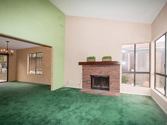 Wonderful views at this 3 Bedroom, 2 Bath single story. 1,242 square feet on a quarter acre lot. Open floor plan. Both dining area and master bedroom have access to private backyard. Living room features vaulted ceilings and brick fireplace. Kitchen has lots of cabientry, tile counter tops and opens to dining area. Great location! Close to Vista Village Downtown (restaurants, movie theater, shopping, creek walk, transportation), Highway 78 access, medical, and more! Minutes to coast!