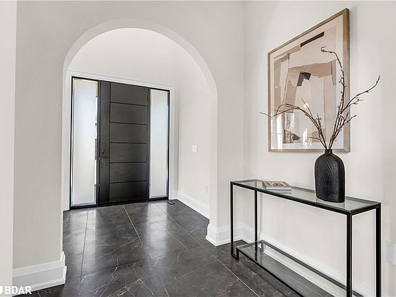 Welcome to your private sanctuary on prestigious ASHBURY ROAD. This custom-built residence is perfectly situated on a PREMIUM CORNER LOT in the coveted Bronte East neighbourhood of Oakville, offering approximately 4,700 SQ. FT. of curated luxury living space.Step through a grand entry door into a dramatic foyer with OPEN-TO-ABOVE ceilings and DOUBLE ARCHED hallways, setting the tone for a minimalist yet warm aesthetic. A MAIN FLOOR OFFICE with custom built-ins and expansive windows offers a serene workspace filled with natural light. The home features PELLA WINDOWS throughout, delivering exceptional quality, energy efficiency, and style.The sun-drenched great room features SOARING 20-FT CEILINGS, ARCHED FEATURE WALLS, and a striking FLUTED STONE FIREPLACE, delivering a bold architectural statement while maintaining a clean, minimalist ambiance. SKYLIGHTS and stunning WAINSCOTTING add layers of texture and light throughout.Entertain effortlessly in the SEPARATE FORMAL DINING ROOM, which flows seamlessly into the heart of the home, an expansive designer kitchen with a 10-FT WATERFALL ISLAND, floor-to-ceiling custom cabinetry, WOLF & SUB-ZERO integrated appliances, and a WALK-IN PANTRY/MUDROOM combo complete with an additional prep sink to keep clutter tucked away. Enjoy DUAL WALKOUTS to the backyard, perfect for hosting large gatherings.The upper level offers 4 generously sized bedrooms. The primary retreat boasts a spa-inspired 5-piece ensuite with a freestanding soaking tub, HEATED FLOORS, double vanity, and a custom walk-in closet. A dedicated SECOND-FLOOR LAUNDRY room adds everyday convenience.The FINISHED WALK-UP basement offers exceptional versatility with a large recreation area, a large HOME THEATRE, a BUILT-IN WET BAR, a guest bedroom with a full ensuite, and an additional multi-purpose office or flex room.Just minutes from top-rated schools, the QEW, scenic parks, grocery stores, and an array of everyday conveniences.