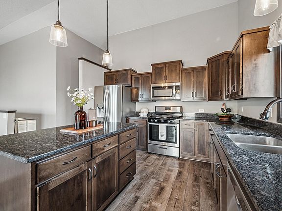 Beautiful 3 bed, 2 bath, 3 car garage home in a fantastic location, close to hwy 65. The spacious entry-way welcomes you in to this three-level split where you will find a bright, open concept living space on the main level with ample natural light and vaulted ceilings. The upper level features 2 bedrooms and a full bath in addition to the large primary suite with a roomy walk-in closet and private ensuite bath. Get the best of move-in ready and new construction with the opportunity to customize the unfinished walk-out basement to fit your needs and create the deck of your dreams just off the main floor dining room.