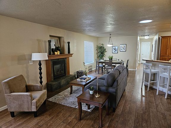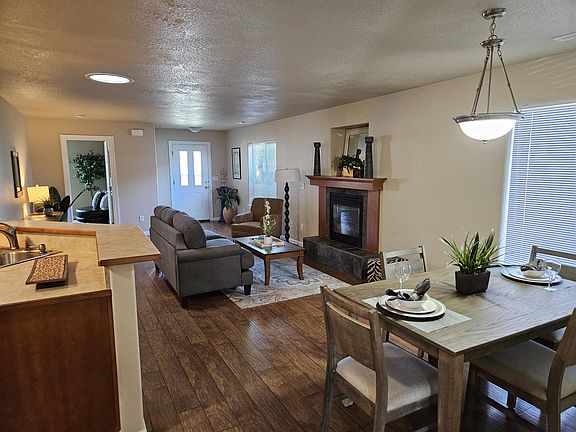 First time on the market, in the popular Snowy Butte Station Subdivision, this Row-Style home offers comfortable one level living, with a nice front entry, stylish laminate flooring, beautiful kitchen cabinetry, and lots of counter space. Both bedrooms are spacious with larger closets, and additional hallway storage. There's convenient parking at the rear, with separate entry. Enjoy the nearby park for relaxing and get-togethers. Other amenities include a fenced patio and private garage. This home is also located in a non-smoking community.