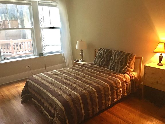 Spacious 2 bedroom/1 bathroom apartment in a residential neighborhood of Evanston. Short walking distance (~5 minutes) to Dempster Purple Line stop, Trader Joe's and Jewel Osco, multiple delicious restaurants, cafes, and shopping. Literally one block from the Lake! Close to Northwestern University also. Unit has a living room (with a decorative fireplace), an exposed-brick dining area/office, two bedrooms, a back deck, and a communal outdoor space. Laundry facilities in the basement, as well as bike storage. Street parking is very easy to find.