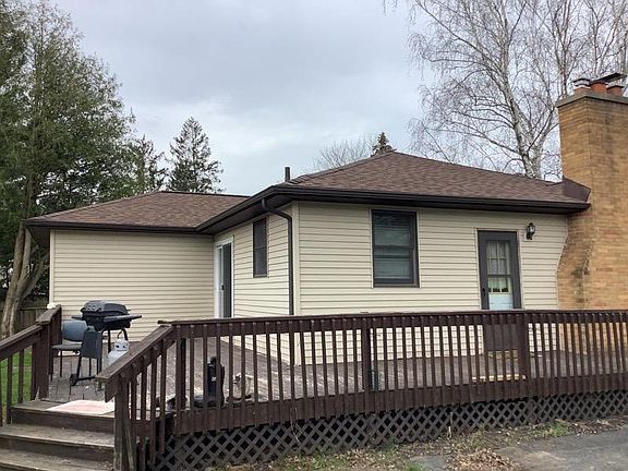 Move in ready! New hot water heater 2022, new roof in 2021, bathroom re-plumbed in 2020, keep warm and cozy in front of the wood burning fireplace in living room, with newer carpet, stylish laminate flooring in kitchen/dining area and wood bedroom flooring. Partially finished rec room in basement adds even more space! This cute home sits on quiet cul-de-sac street in the village of Sparta. Home is located close to schools & shopping, fenced yard for the kids and pets, wrap around wood deck for your summer grilling enjoyment. Perfect Family Home!