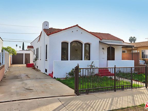 This 2 Bedroom 2 Bathroom Spanish Style home offers a buying opportunity for a first time buyer located on a quiet and beautiful maintained one way street. With a bright and open floor plan the living room has vaulted ceilings, light fixtures, and a faux fireplace. A separate dining room with original bookshelves will add charm to any setting. The kitchen has ample cabinets for storage needs. Hookups for washer and dryer have been added as well as an additional bathroom. The wood floors have been refurbished in the living room, dining room and bedrooms. Tile in the bathrooms and kitchen. A Detached two Car Garage, and long driveway provide additional parking for family and guests. The back yard offers plenty of space for entertaining as well as a Covered Patio for shade. The back yard is large with an additional space behind the garage.