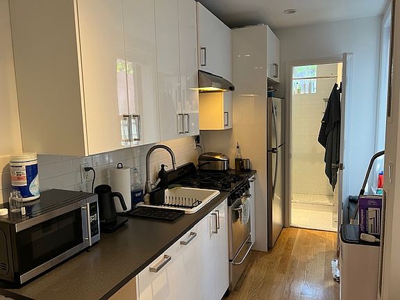 Bright and Sunny Apartment with Southern Exposure. Recently renovated. High Ceilings. Recessed lighting with dimmer switches. Hardwood floors. Thru the wall A/C. Bedroom accommodates a queen sized bed, furniture, 2 closets and ceiling fan. Windowed kitchen. Stainless Steel appliances. Microwave. Spacious cabinet and counter space. Tiled backsplash in the kitchen. Windowed tiled bath. Vanity mirror. Tree-lined Street. Well maintained building. Steps to the 4, 5, 6 and Q. TENANT OCCUPIED. For a quick and easy view of this apartment: Call, text or email me.