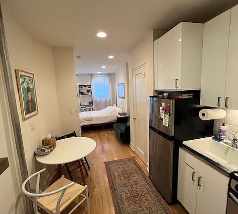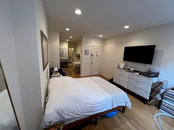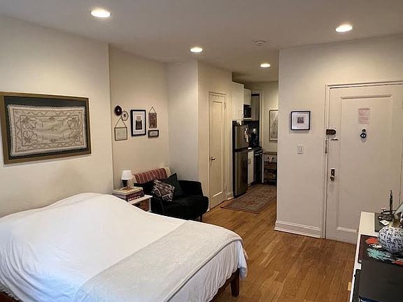 EXCEPTIONAL two room studio overlooking tree lined East 84th street. Recently renovated. Bright and quiet. Beautiful wooden floors. High ceilings. Recessed lighting with dimmer switches. A/C. 2 closets. Windowed kitchen. Full size refrigerator. Country sink. Shelved vanity bathroom mirror. TENANT OCCUPIED. Steps to the 2nd Avenue (Q line) and 4, 5 and 6 Subways.