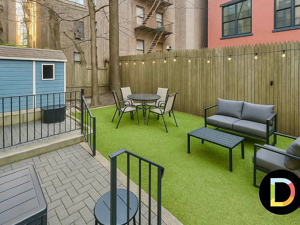 Private gardenHigh ceilingsLarge closetsSpacious lr