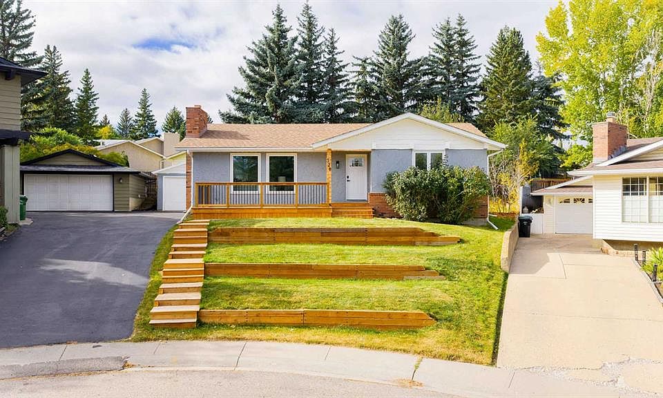 Welcome to this beautifully renovated 4-bedroom, 3.5-bath bungalow in the heart of Canyon Meadows, where timeless design meets modern luxury. Every inch of this home has been thoughtfully updated inside and out—including the beautiful, low-maintenance landscaping—creating a move-in-ready retreat on a quiet cul-de-sac in one of southwest Calgary’s most established communities. Step inside and immediately feel at home in the bright, open-concept main living area. The foyer features a built-in bench and stylish tile flooring, setting a welcoming tone that flows into the spacious living room, complete with a sleek gas fireplace and rich hardwood flooring throughout the main level. The kitchen is a showstopper, designed for both function and style with an abundance of cabinetry, quartz countertops, wall oven, and a massive central island with a cooktop and separate prep/veggie sink—perfect for entertaining or everyday family life. Two bedrooms on the main level include a luxurious primary suite, featuring a spa-inspired ensuite with a freestanding soaker tub, walk-in shower with rainhead, and custom walk-in closet with built-ins. The second bedroom includes a built-in armoire, making it ideal as a guest room or home office. A main-floor laundry room adds everyday convenience. The fully finished basement expands your living space with a huge open recreation area, a wet bar, and two additional large bedrooms, each with custom closets. This level also features two bathrooms—a convenient 2-piece powder room and a 3-piece bath with a walk-in shower—making it perfect for family and guests alike. Outside, the attention to detail continues. The yard is fully landscaped with easy-care design, built-in planters, and a large deck for outdoor dining and relaxation. The oversized double detached garage provides plenty of room for vehicles, storage, or a workshop, while the shared extra-long driveway offers additional parking space. Canyon Meadows is a sought-after community known for its mature trees, beautiful mountain views, and strong sense of community. You’re close to Canyon Meadows Golf and Country Club, Fish Creek Park, and a wide range of schools, shops, and amenities. With quick access to major routes and public transit, it’s easy to get wherever you need to go—while still enjoying the peaceful charm of this established southwest neighbourhood. Elegant, functional, and move-in ready—this home perfectly combines modern comfort with the warmth of a mature Calgary community.