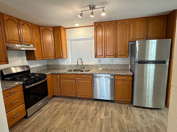 Stainless steel appliances included: refrigerator, dishwasher, stove, washer, and dryer