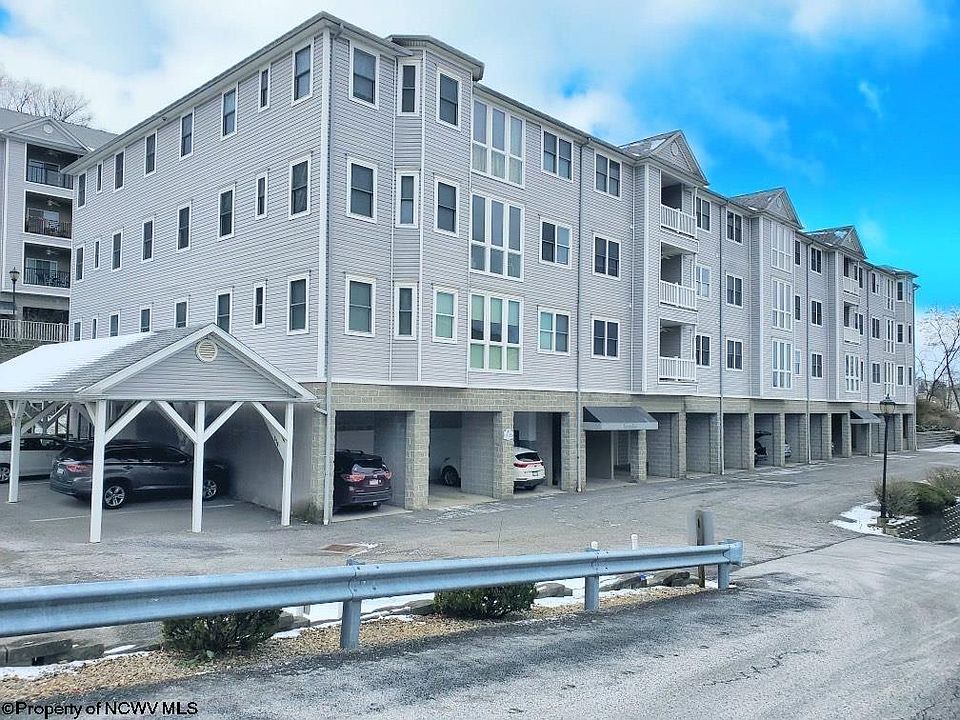 Check out this floorplan! This quick move-in ready 2-bedroom, 2 full bath single-level unit is a much-desired corner unit that lets sunlight flood the open floor plan with 9’ ceilings. Fantastic location, convenient to hospitals, WVU, and shopping. Magnificent amenities include clubhouse, POOL, and 24/7 fitness center. Enjoy coffee on your private balcony or in your sunny breakfast nook with park-like views, enjoy the green space along the pond and fountains. En-suite primary bedroom with two large closets. Second bedroom or office is down a private hallway and near 2nd bath. Elevators in each building. Abundant storage in the unit itself and additional storage in the basement storage unit. Don't miss the immersive virtual tour!