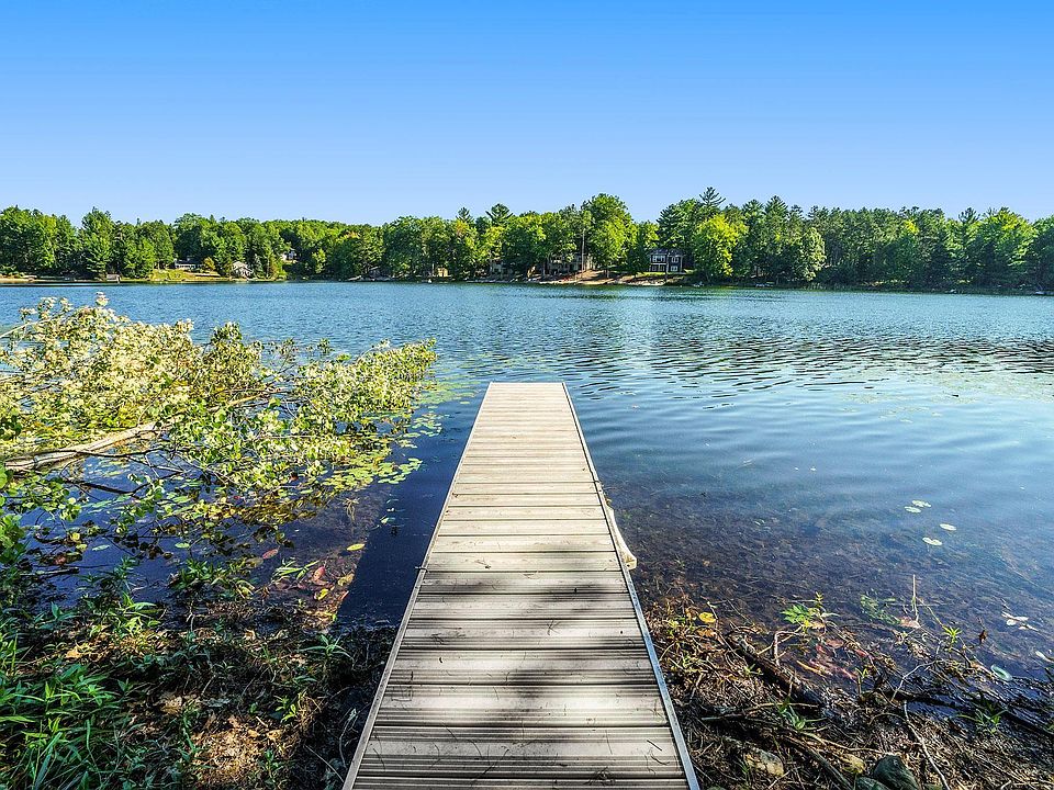 PEACEFUL, TRANQUIL...TIBBETS LAKE WATERFRONT! Now is your chance to own your own slice of heaven on Tibbets Lake, a no wake, private lake. This home is vacant and move-in ready. The open, updated kitchen allows you access directly to the back deck where you have expansive views of the lake and natural spaces in your backyard. With main floor living that includes a large primary bedroom with walk-in closet including a washer and dryer, and an oversized bathroom with a barrier free shower, this home has all of your needs covered. The lower level is a walk-out to the patio and steps down to the lake. A large, wet bar area, with a bar fridge, opens to the spacious family room, is calling you for fun game nights, days at the lake, and more! There is also another laundry room in the lower level along with large storage closets. Come home to the solitude that this home offers you....plus, Peegeos Restaurant is just a 1/3 mile away!