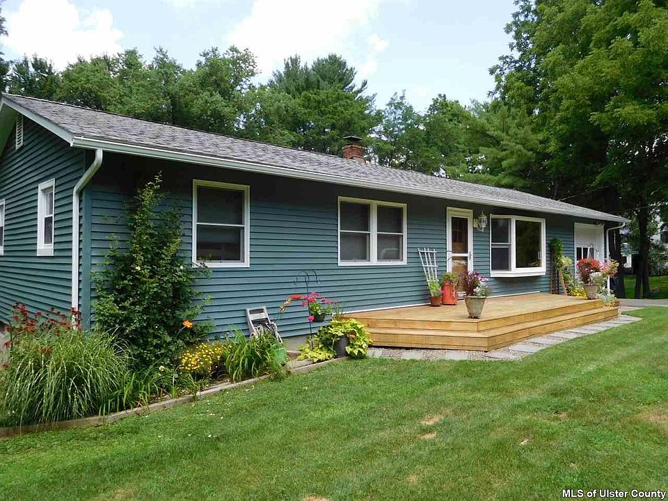 Look no further - here is the home that you have been looking for. Located on a quiet street in Old Hurley this 3 bedroom 2 bath Ranch is waiting for you. As you approach their meticulous home you will notice the new vinyl blue siding with newer roof, windows, and gutter. Once you walk inside thru the front door you will be taken back by the open floor plan, refinished hardwood floors and how bright and airy the rooms are. The dining room will lead you to the updated kitchen with granite countertops, wood cabinets (and plenty of them), stainless steel appliances and an apron front sink, this is sure to please any chef. Large living room with vaulted ceilings knotty pine and built in bookshelves with French doors that lead you to the back deck that over looks the back yard, which is just under a 1/2 an acre. This home offers 3 bedrooms all with hardwood floors and decent sized closets. Downstairs has been set up as a gym, however it can be used for whatever your hearts content. This home is a true delight and pride of ownership shines thru.