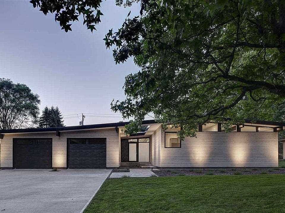 CONTEMPORARY DESIGN dedicated to minimalistic design and sustainability. Situated in convenient University Hts, this distinctive modern ranch-style home offers premier construction with abundant windows including clerestory transoms maximizing daylight and strengthening the modern style, steel wrapped beams, custom metal railing and energy neutral home with heated flooring (kitchen, office, master suite, laundry, and garage), geothermal and Moxie solar panels. The open floor plan provides comfortable, easy living with kitchen, dining area and living room seamlessly connected; three ensuite bedrooms on the main level and an additional study/fourth bedroom; four tiled bathrooms on the main level; 1st floor mudroom/laundry room; lower level family room, 5th bedroom and bath. Dramatic architectural lines by Neumann Monson are reflected from the exterior and throughout this innovative home. Walking distance to Iowa Health Care, U of I Law and Dental schools and U of I sporting events. Extraordinary, in-town living.