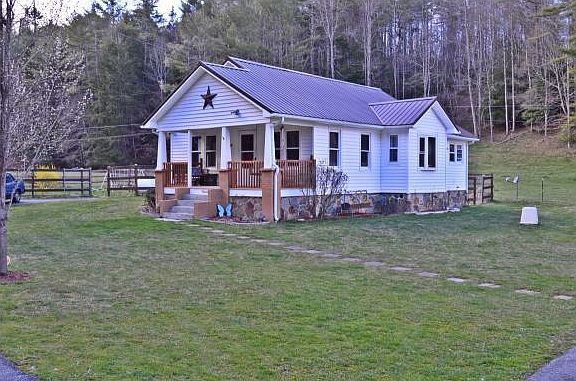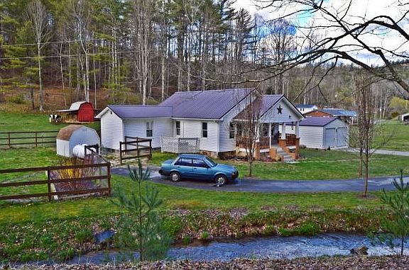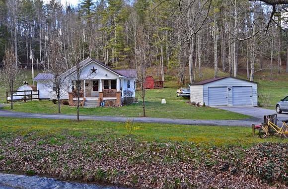 Country living at its best. Well maintained Cottage with large two car detached garage (22x30), sitting on a beautiful level 1 acre tract of land with a rushing creek running the length of the property, large fenced in back and side yard, huge back deck (16x24), storage building, asphalt driveway, mountain views and a nice front porch (7x19) to enjoy the creek sounds and the country setting. The home has a heat pump, hardwood floors in the living room and dining area, large kitchen with newer cabinets, range and refrigerator. The dining room has lots of light from bay windows and knotty pine accent walls. Great location close to town, Watauga Lake, Appalachian trail, and the National Forest.