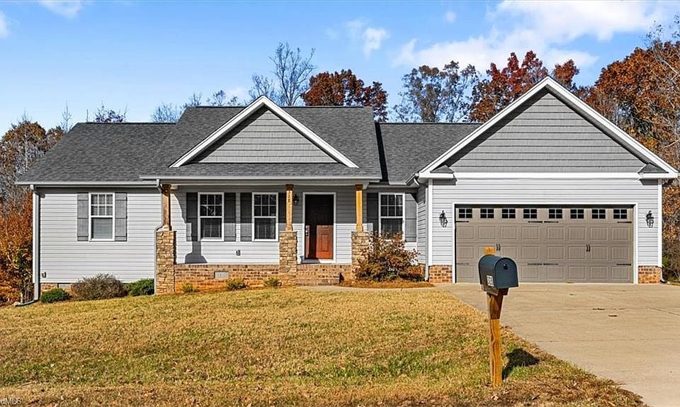 One level living in cute Stoneville neighborhood under $300,000! Split bedroom plan. Gracious sized primary complete with huge walk in closet and dual sinks. Open living space with a kitchen island for family gatherings. This one acre lot is one of the larger ones in the neighborhood. Fenced backyard. EV charger in garage. Nicely landscaped and move in ready.