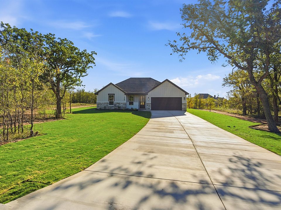 Exceptional location in Brock's Newest Neighborhood- Garner Ranch! Located in a quiet cul de sac on a treed one acre lot you will love this fantastic home in Brock ISD! Walk in to find a nice flowing floorplan with wood look tile flooring throughout the living areas, designer colors and fixtures. Open concept & tons of natural light, Kitchen features massive island & breakfast bar, custom cabinets & quartz countertops, Master suite with garden tub, separate shower & walk in closet, , Split Bedrooms, Very Energy Efficient, Take in fantastic Parker County Sunsets from the expansive covered back patio. With plenty of room to run & play, this property captures the charm of country living. Come See this Wonderful Park Ridge Home!