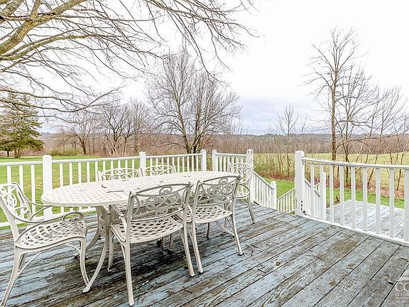 Rambling mid- century ranch on private one acre level yard, surrounded by farmland in land conservation. Just walk across the road and you can enjoy the Columbia Country Club's golf course, pool and clubhouse. Well appointed Country kitchen-dining room with skylights opens to welcoming deck. Dramatic cathedral ceiling living room has space for large gatherings of family and friends with track lighting to set the mood. Three bedrooms, one presently used as office, den as well as laundry room, and1 1/2 baths complete the main floor. Full basement and attic allow for storage, hobbies. A sturdy, outbuilding offers additional storage for lawn and garden supplies. The attached garage is convenient to kitchen for all weather unloading. The house is available furnished, if desired. 15 mins to Hudson.Estate Sale.