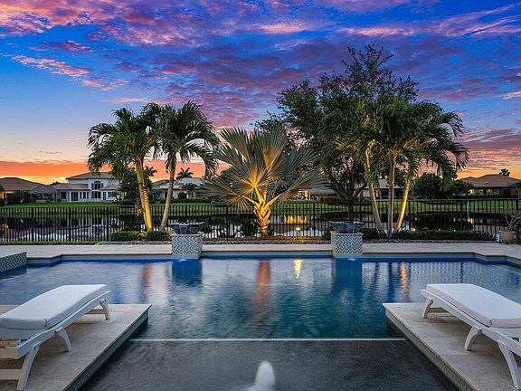 Stunningly designed by renowned interior designer, Giovanni DiStadio, this meticulously maintained lakefront Briarbrooke model is in the premier gated community of Rialto in Jupiter, Florida. This sprawling single-story home is situated on one of Rialto's premier estate lots with 130 feet of lakefront and benefited from numerous upgrades including the addition of sliding glass doors from the formal living room, resort style pool and stunning water views. From the moment you enter the front door, you will fall in love with the spacious open floor plan and the mesmerizing view of the lake with an oversized patio and large backyard. This home with a total of 5,163 square feet, exudes elegance with a large formal dining room, elegant entry, and living room complete with a decorative fireplace,