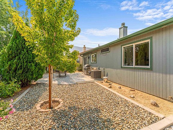 You do not want to miss this one!! Stick built home in the desirable area of Rainbow Bend Home , literally just steps to the Truckee River, has 2 bed and 2 full baths plus a den/office. Kitchen has granite counters, newer faucet, refrigerator, microwave, soft close cabinets. Solar screens to help keep the heat out (or in during winter months) New flooring in living room, recently painted throughout. Tankless water heater. Dont miss the bathrooms!!, Upgraded vanities which are beautiful. (newer toilets) Newer furnace - water heater and furnace have transferable service agreements. The washer and dryer remain and look, you can do two loads of laundry at once as washer has bottom smaller tub for delicates etc. New LVP flooing in the den/office, both bathrooms, master closet and laundry room. Yard was changed to all dg in 2020 so very little maintenance. Garage is finished. Home even has new upgraded vapor barrier Full home water treatment system (owned), reverse osmosis filtering to kitchen sink and refrigerator Rainbow bend has a great club house with indoor swimming pool, sauna, gym, rec room, tennis courts plus security which patrol the neighborhood. Conveniently located just 5 min East of Sparks makes this area great for those that need to go to either Sparks, Reno, Fernley, USA Parkway etc.
