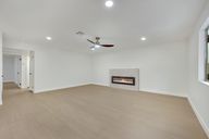 Modern quartz countertopsTons of natural lightStainless steel appliancesOpen concept floor planModern electric fireplaceModern tiled showersFramed mirrors