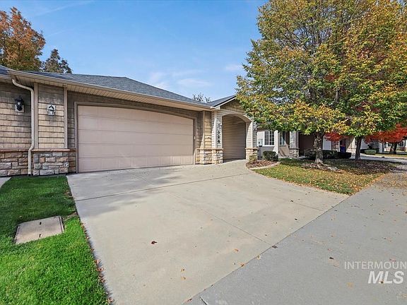 Charming home in a quiet, gated 55+ community in the heart of Eagle! The open floor plan features vaulted ceilings that create a spacious, airy feel in the great room, complete with a cozy gas fireplace. The kitchen includes a large breakfast bar and a casual dining area with sliding doors leading to a private patio—perfect for morning coffee or evening relaxation. The large primary suite offers a walk-in closet for added convenience. Enjoy safe, low-maintenance living in this beautifully maintained community, ideally located near major hospital, senior center, shopping, dining, and the library.