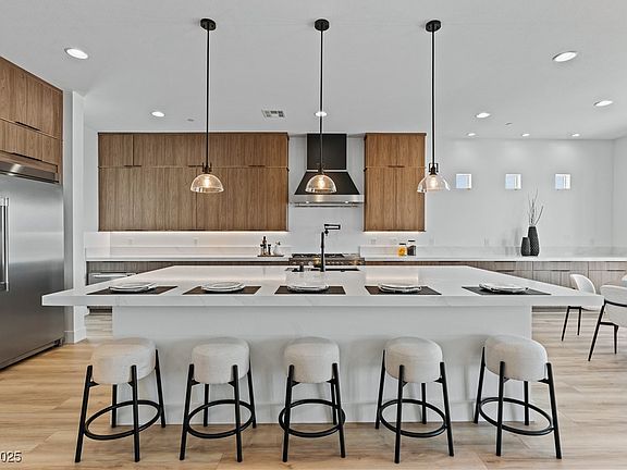 SELF-GUIDED OPEN HOUSE TOURS 7 DAYS A WEEK WITH U TOUR. Contour Persona is an enclave of Executive-Style homes with clear site lines to the Las Vegas Strip. Neighbors include Heritage Park, the Aquatic Center, the Senior Facility, and the nearby amenities of the Water Street District. This two-story new home offers mountain & strip views, 5035sf, 5 ensuite bedrooms w/ walk-in closets, 4-car garage parking, RV PARKING + hook-ups, tall ceilings, massive laundry w/island, Super Loft at deck, soft-close cabinets, quartz slab counters, luxury flooring finishes, matte black fixtures, wet bars, linear fireplace, oversized patio/deck, and a pool-sized yard. Kitchen includes nook and butler area with walk-in Pantry and space for additional fridge, Bertazzoni Master Series stainless appliances including 48" range/oven with hood, refrigerator + freezer columns, 2 dishwashers, microwave, and warming oven. Primary Bedroom has an oversized walk-in closet w/ laundry, wet bar and a spa-like bathroom.
