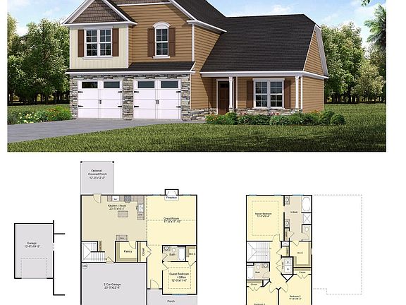 This gorgeous brand-new 2-story home offers 2,344 square feet of stylish, open living space with a spacious 2-car garage and covered back porch. Step inside to an inviting open-concept first floor, where the expansive Great Room with a cozy electric fireplace flows seamlessly into the dining area and well-appointed kitchen, featuring granite countertops, center island, oversized walk-in pantry, and sleek finishes—perfect for both everyday living and entertaining. From the dining room, step out onto your 12' x 12' covered back porch, an ideal spot for morning coffee or evening gatherings. Built-in Drop Zone located conveniently by garage entrance. Guest Bedroom/Office with walk-in closet and access to full bathroom is also located downstairs.