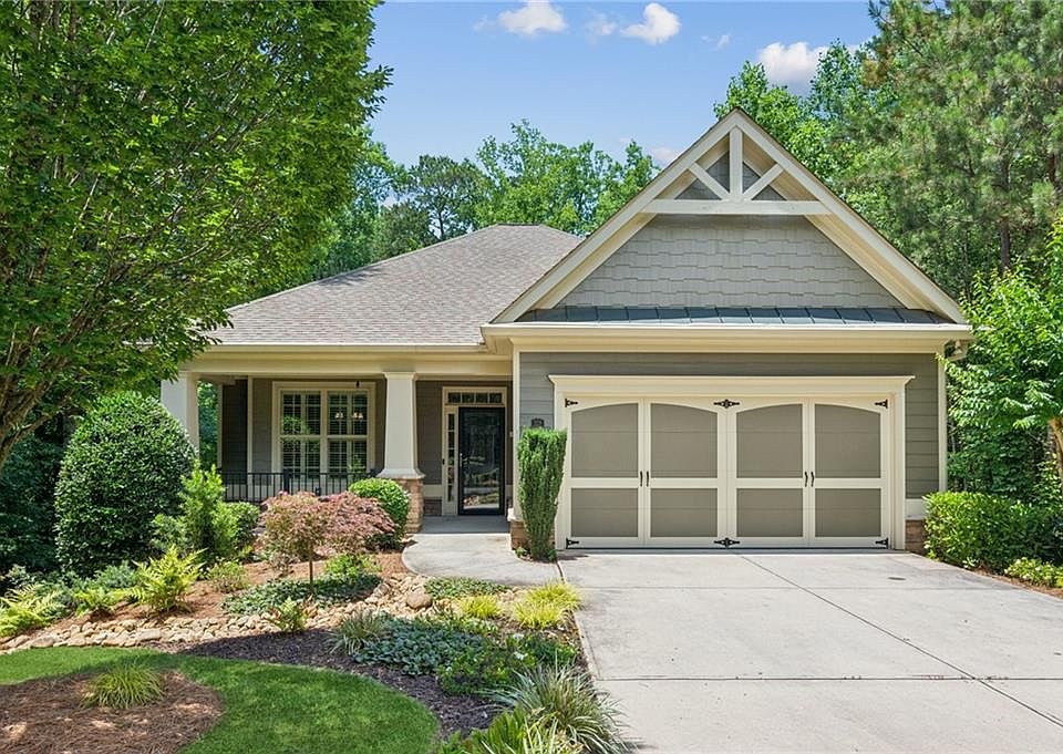 Reduced Price! This impressive Craftsman RANCH boasts a finished terrace level and spans over 3,200 sq. ft., making it one of the largest homes in the subdivision. Nestled on a premium 1-acre lot with end-of-street privacy and just 2 homes on the alley, it offers a serene, wooded backdrop. HOA covers grounds maintenance , trash pick up, irrigation ( system and water ), exterior paint, and amenities. Enjoy the open-air screened porch or lower-level deck. The savvy kitchen features granite countertops, rich cabinetry with lower pullout shelves, and flows into a spacious fireside family room. A private dining room is perfect for gatherings. The primary suite includes a dual vanity, shower, and a custom walk-in closet with vanity, hamper, jewelry storage, and personal security safe. A secondary bedroom and flex room share a full bath with an accessible shower. The beautifully finished terrace level offers a large family room with a gaming area, full bath with tub/shower, bedroom, storage, and a private covered porch with backyard access. Current owners have put more then $100,000 upgrades into the home including a $15,000 whole house generator with extended warranty, professional landscaping, custom draperies and automatic blinds, pull outs and quiet close doors and drawers, extra shelving and storage, upgraded bath faucets and hardware, and so much more! This home offers the benefits of being in an active adult community while still enjoying your privacy. Ideally situated off Hwy. 140 near Hickory Flat, with nearby restaurants and retailers, this home is minutes from Northside Cherokee Hospital and medical professionals. Welcome to a Wonderful Active Adult Community with social gatherings and activities.