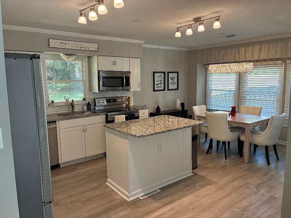 Wonderful single story 2 bedroom ranch with an office home in a peaceful setting near the lake with water views! This home has a beautiful kitchen with stainless steel appliances and granite countertops, plenty of natural light, washer dryer in designated laundry area, a large front deck to enjoy the musical sounds of nature while looking at the lake. Close proximity to the shopping, restaurants and highway but tucked away enough to feel like you are on a vacation. This is a must see! Fully furnished with 2 queen beds and available for monthly short term rental. All utilities, pest control, garbage and lawn service are included. You just need to bring your toothbrush!