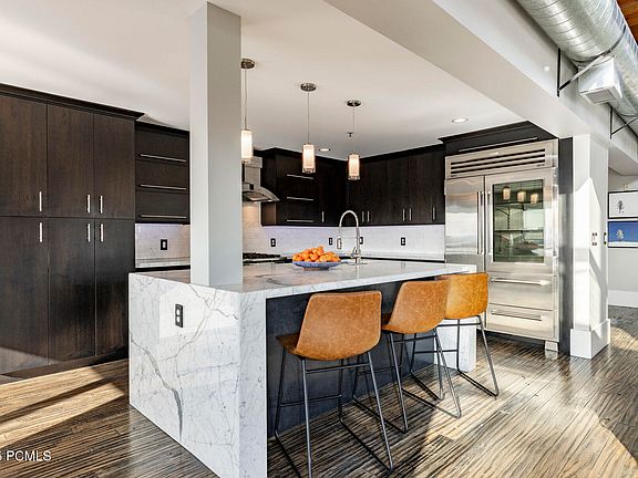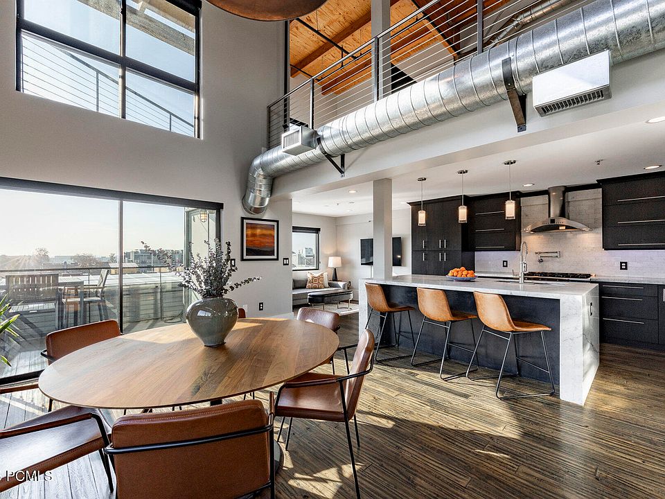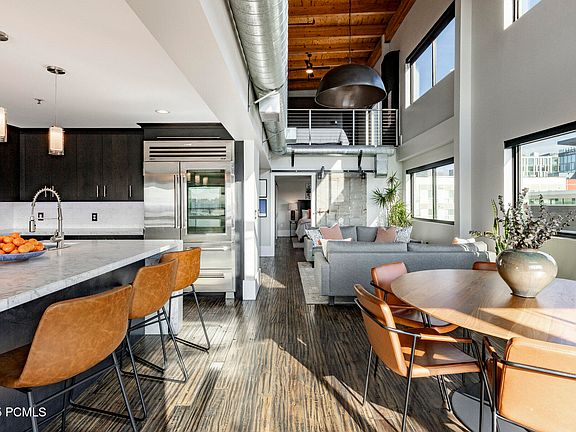 Experience sophisticated living atop the city with breathtaking views of the Wasatch Mountains and the urban landscape in this luxurious loft located in the heart of downtown Salt Lake City. This spacious end unit features two bedrooms and three bathrooms, highlighted by a stunning array of oversized windows that frame picturesque sky and mountain vistas. The main level boasts a well-appointed bedroom with an ensuite bathroom, complemented by an entertainer's kitchen equipped with high-end appliances and a generous Carrera marble island. Elegant light fixtures and soaring ceiling heights enhance the open-concept design of this home, creating a welcoming atmosphere for intimate conversations and comfortable living. The open dining area seamlessly integrates with the living space. Ascend to the upper level, which offers a cozy TV lounge and a dedicated floor-to-ceiling window nook ideal for meditation, yoga, or a home office, all while enjoying expansive views. The primary suite provides a tranquil retreat. Balconies on each floor invite you to take in the stunning western views of the Oquirrh Mountains and enjoy fresh air. The unit also comes with an indoor parking space and exceptionally large storage unit just two floors away. Your social calendar will be vibrant, with a wealth of cultural events and activities just steps away. Attend jazz games and the upcoming hockey season at the Delta Center, experience Ballet West at the historic Capitol Theater, enjoy symphonic performances at the architecturally stunning Abravanel Hall, or catch the latest theatrical productions at the Eccles Theater. Ten music venues hosting national popular rock, pop and alternative bands are all within a mile. For a taste of local flavors, take a leisurely walk or bike ride to the farmers market, where you can indulge in pastries, fresh local produce, artisan crafts, and exceptional cuisine at Salt Lake's nationally renowned restaurant scene is all just a short walk away including: Copper Onion, White Horse, Eva's, Franklin Street, Valters, Fleming and so many more. Also conveniently located in the 328 Building on street level is Vosen's Bakery and Maxwell's Bar for your early morning coffee and late night pizza needs. Travel is a breeze, with Salt Lake International Airport only nine minutes away by car. Outdoor enthusiasts will appreciate the nearby City Creek Canyon, a favorite hiking spot with an extensive trail system for all levels. This condo, with its extraordinary views, provides all you could want in a sophisticated, urban, walkable lifestyle.
