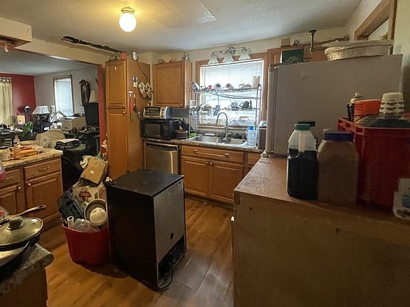 This two-story property features a detached 2-car garage and reliable city water and sewer. The kitchen includes a stove, dishwasher, microwave, and refrigerators, plus, the washer and dryer are also included. Enjoy significant energy savings from solar panels (assumable $59/mo payment) which power the electric hot water heater. Stay comfortable knowing the furnace was recently updated. Cooling is provided by window AC units.