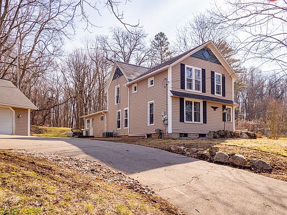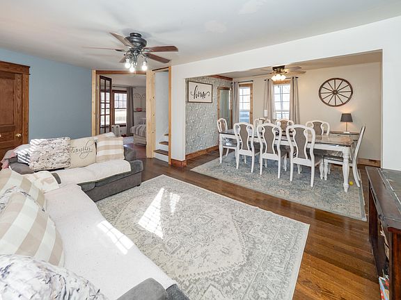 This home sits proudly on over 2 acres, is near a park with a waterfall and pond and has been recently updated! As you enter the home you will find the large, open kitchen area complete with pantry, new exhaust hood and range, and new countertops. The full bath and laundry area sit adjacent to the kitchen. Continue on to the open living and dining rooms as well as the main bedroom with new French Doors. A nice office/bonus room sits just off the living room. Upstairs you will find 4 additional bedrooms. The basement is clean and is perfect for storage or a possible workshop. Outside you will find a huge 3 stall garage that has a ton of possibilities. All of this sits on 2 acres of wooded land that overlooks the neighboring park! New electrical service, gutters, fixtures, and more!
