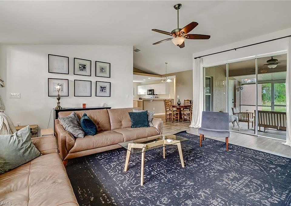 Great location, NO HOA! FENCED BACK YARD Dry lot nestled on 1.14 acres in the heart of Golden Gate Estates, open floor plan features endless opportunity from the inside out. Large kitchen features natural lighting with additional bar space for entertaining. Slider doors lead out onto a spacious and screened lanai looking out to the private fenced yard, which sets the stage for family entertaining and leisurely living in a quiet rural area. Open living space with accent wall pairs beautifully with light vinyl plank flooring. Oversized guest bedroom fits a king bed which gives a second master feel. Spacious driveway leads you to a two car garage with additional 3 parking spaces paved off to the right for easy guest access. Brand new 2022 water heater installed, roof replaced 5 years ago, along with septic tank being pumped. Located just under 5 miles away from local village shops and dining, public schools, Publix shopping center, and the new recreational park off Oil Well Road. Bring your toys! Tons of outdoor space for your pets/little ones to run around, add a pool, fire pit, etc. Perfect property for year round living or seasonal enjoyment! Seller open to paying closing costs and rate buy down!