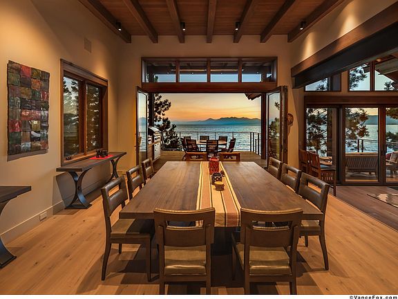 Enjoy the pinnacle of lakefront living from this contemporary 6 bedroom, 7.5 bath mountain home in Dollar Point, located on the sun-bathed north shore of Lake Tahoe. The home exudes a comfortable, zen-like peaceful atmosphere. Built in 2016 with a clean and well-planned 6,348 sq ft floor plan, this beautiful custom home is in a class of its own with its lakefront setting, modern steel framing and warm wood interface, rich luxurious finishes and private neighborhood amenities. The home was built to capture the natural world around it with large panoramic lake views from every room. Designed with absolute beauty, the home offers an organic dialogue of space, materials, textures and colors. Thoughtfully integrated features of the home elevate the luxury experience throughout the home, including a gym, outdoor spa overlooking the Lake, home theatre and recreation room, an elevator, climate-controlled wine storage and home office with panoramic lake views. The home’s design fosters connection with its open concept layout paired with the quiet retreat of beautifully designed bedrooms, all ensuite. The kitchen, a space to delight any chef, is centered around a mahogany butcher block island, with double dishwashers, and a 48” Wolf range and exhaust hood bookended by two Subzero refrigerators and freezers. Expansive decks and patios extend the living space lake ward, serving as a stage from which to enjoy your lakefront living. Situated on over half an acre on the Lake, with approximately 90 feet of lake frontage, two private buoys directly in front of the home, and a community pier and attendant for your boating pleasure, as well as pool, tennis courts, beach and summer activities.