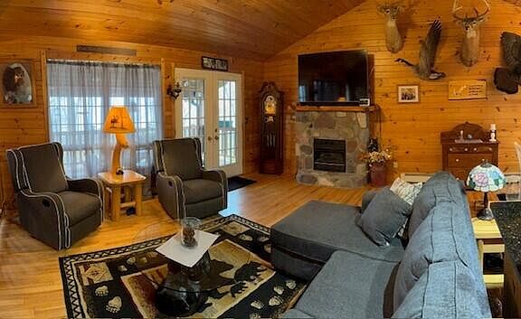 This home is for the Nature lover... surrounded by lots of mature trees, wildlife and a pond that can be accessed by canoe or kayak and skated on in the winters. There are 2 great deer blinds, lots of trails to explore the 65 acres on. Home has pine paneling and most of it came off the property. Home offers a finished walkout basement with 2 bedrooms and a full bath with jacuzzi tub. Home also offers a generator that will run the whole house with either propane or gas. Hardwood floors throughout and ceramic tile in both bathrooms. The hot water propane heat is only about 2.5 yrs old