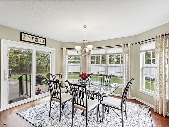 Prepared to be moved! Welcome to 32800 Avon Road in Avon— a stunning one-story Ranch with the perfect open floorplan. Step inside to be greeted by an intimate dining room, creating a perfect setting for family gatherings or elegant dinners. The spacious living room with vaulted ceilings opens effortlessly into the large kitchen and breakfast area. This home offers the perfect layout for entertaining family and friends! Anchoring the living room is a stunning gas fireplace that invites cozy nights in. The kitchen features rich wood-toned cabinetry with custom pull-out wood drawers added in 2024, granite island countertop (2022), stylish backsplash, and newer appliance that will remain with the home. The light filled breakfast area is a great space to enjoy your morning coffee while taking in the backyard views. You’ll also find three generously sized bedrooms. Two share a full bathroom, while the Primary suite has its own bathroom and walk-in closet. Recent updates to the Primary bath include granite countertops and modern light fixtures (2024). The laundry room, just off the kitchen helps round out the single-floor living design. Recent upgrades include HWT (2023), fresh paint on all ceilings and walls (2022), all ceiling fans (2024), and a Pella sliding patio door with interior blinds (2019). Outside, enjoy a backyard surrounded by mature trees and a partial vinyl fence. A spacious patio offers the perfect setting for outdoor entertainment. Motion sensor lights have been added to both the front and back of the home. A separate water meter services the sprinkler system, which covers both front and back yards. The property also features a 2-car oversized garage with premier epoxy flooring. Perfectly located with easy access to I-90, numerous restaurants, shopping, and just one exit from Crocker Park. With room to gather, space to grow, and comfort in every corner, this home is ready for your next chapter.
