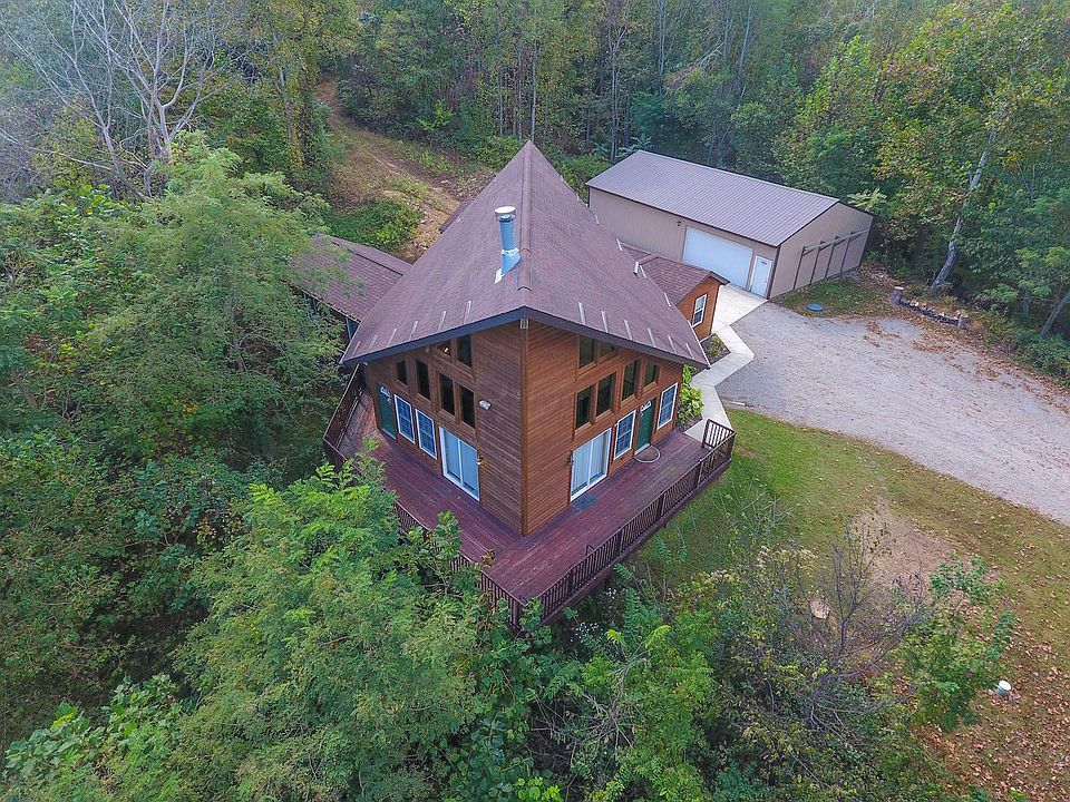 Located in Western Vinton County, this fully furnished 3428 Sq Ft lodge boasts 6 bedrooms and 3 full baths. Floor to ceiling windows and stone wood burning fireplace in great room. Large owners suite. County water service. 30'X50' pole building. All wooded property. All of sellers minerals transfer. Lots of ATV trails. Great Hunting! Showings by appointment only.