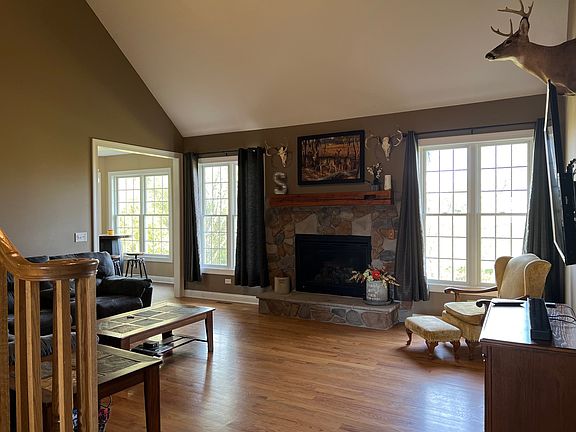 As you pull in the circular drive to this spectacular country estate, you'll reflexively take a deep breath. Approaching the south-facing entrance of this custom-built home, you'll pause to take in the 360-degree views of mature trees and rolling terrain and listen to the sound of the wind, birds, and...peace & quiet. Serenity extends into the front entryway as you glimpse the vaulted ceiling of the great room, while passing the sun-filled dining room. Next you see the open staircase leading upstairs, the gas fireplace flanked by extra large windows, and ample space for family lounging. Turning to your right, you enter the primary suite featuring a bay window, beautifully appointed ensuite bath with double sinks, large tub and glass door shower, and huge walk in closet. Continuing back through the great room, you see another bay window dining area before stepping into the spacious kitchen. Custom silver oak cabinetry, peninsula eating area, high-end appliances and pantry. Laundry room, a second full bath, an office/bedroom space and the 3-car garage/man cave with full kitchen round off the first floor. Upstairs you'll find an ensuite bedroom with 6x11 closet; and two bedrooms sharing a jack & jill bathroom. What's behind door number 4? A massive bonus room that extends the length of the garage! Also, the walk-out basement, featuring two bay windows and potential bedroom, is drywalled with a stubbed-in full bathroom awaiting your finishing touches. In-law apartment, guest quarters, exercise room, entertaining space? In addition to ample storage, the 9-foot high basement has a separate mechanical room (including panel for adding a generator). Stepping outside the double doors into the expansive private backyard, you'll see the potential for patio space, play areas for children and pets as well as how the future addition of a deck off the kitchen above will offer all-season enjoyment of your outdoor sanctuary. Continuing up the hill and around the garage, you might catch a glimpse of the stream that winds through the property before you come to a small barn with a larger barn beyond. Inside the circle drive is a garden shed with 200 amp service and a RV cement pad with 50 amp service. A pond on the far west side of the property is accessible via an electric livestock gate (cows are presently in the fenced pastures). Every box is checked for peaceful country living, yet you're only 10 minutes from Ottawa's shopping, schools and recreational opportunities.