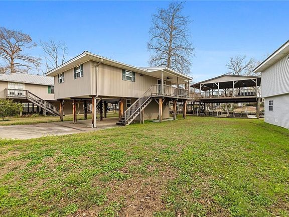 Beautiful views of the Tickfaw river. Huge covered party deck w/boat storage. covered parking, large yard space, 1/2 bath in storage room downstairs. Seller is leaving furniture just for you!