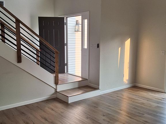 The kitchen is a showstopper, featuring custom solid wood shaker-style cabinets, granite countertops, stainless steel appliances, and a deep farmhouse sink perfect for both everyday meals and entertaining guests. The first-floor primary bedroom opens to a private patio, while the primary bathroom boasts a double vanity with double sinks and a quartz top.