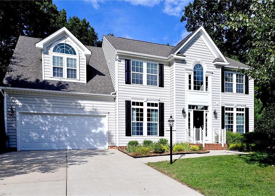 Tucked in the heart of Stonehouse Glen, this stunning 4-bedroom, 2.5-bath home offers the perfect blend of comfort and style. Boasting over 2,500 square feet, the open-concept layout features a gourmet kitchen with granite counters, a center island, all flowing seamlessly into the spacious family room with a cozy gas fireplace. Soaring ceilings and abundant natural light create an inviting atmosphere, while the formal dining and sunroom provide perfect spaces for entertaining. Upstairs, the oversized primary suite offers a spa-like retreat with a garden tub, double vanity, and walk-in closet. Set on a half-acre lot with a rear fenced yard and attached 2-car garage, this home is part of a vibrant community offering a clubhouse, pool, fitness center, playgrounds, trails, and more. Located just minutes from I-64, shopping, and top-rated schools. Don’t miss the chance to call 3282 Newland Court your next home.