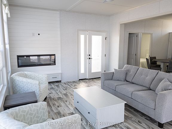 Set against the picturesque backdrop of Southern Georgian Bay, this 2-bedroom, 2-bathroom Beausoleil Cottage model offers an exceptional opportunity for resort living at its finest. Proudly manufactured in Canada, this move-in-ready cottage is perfect for those eager to take full advantage of the 2025 cottage season. Located on a premium waterfront lot, this cottage provides panoramic views and is just steps from the resorts new private pool. At 718 sq ft, this thoughtfully designed cottage features an open-concept living area, a fully-equipped kitchen, and a cozy yet spacious living room ideal for hosting family and friends. Step outside to one of two covered decks and enjoy your morning coffee while watching the sunrise over the water. With modern furnishings and top-tier amenities, including central air conditioning and a 50 linear electric fireplace, this cottage is designed for comfort and convenience. Wye Heritage Marine Resort is a seasonal 8-month resort, allowing you to enjoy the best of cottage living from spring to fall. The community offers an abundance of amenities, including two heated swimming pools, sports court (pickleball, tennis, basketball), restaurant, sandy beach, playground, and boating services. Cottage owners are guaranteed a boat slip and receive a 20% discount on their slip fees. This is an exclusive Phase 1 lot, so don't miss your chance to own this prime piece of paradise on Georgian Bay!