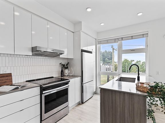 Light-filled and stylish, this Scandinavian-inspired corner condo pairs contemporary design with a prime location. Wide-plank floors and large windows flood the space with natural light, while a Juliette balcony adds fresh air. The kitchen shines with Fisher & Paykel + Whirlpool appliances, quartz counters, and an eating bar. Enjoy in-suite laundry, a versatile pantry/closet, spacious entry, and a quality primary closet organizer. COURT WEST allows 2 pets and offers a massive courtyard with movie nights, shared EV chargers, secure bike room, 1 parking stall, and a large locker—steps to Seven Oaks Mall, Superstore, Trading Post Brewing, Cora’s, transit, and minutes to Mill Lake Park. QUICK COMPLETION POSSIBLE