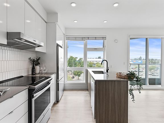 Light-filled and stylish, this Scandinavian-inspired corner condo pairs contemporary design with a prime location. Wide-plank floors and large windows flood the space with natural light, while a Juliette balcony adds fresh air. The kitchen shines with Fisher & Paykel + Whirlpool appliances, quartz counters, and an eating bar. Enjoy in-suite laundry, a versatile pantry/closet, spacious entry, and a quality primary closet organizer. COURT WEST allows 2 pets and offers a massive courtyard with movie nights, shared EV chargers, secure bike room, 1 parking stall, and a large locker—steps to Seven Oaks Mall, Superstore, Trading Post Brewing, Cora’s, transit, and minutes to Mill Lake Park. OH SAT, SEPT 27 2-4PM