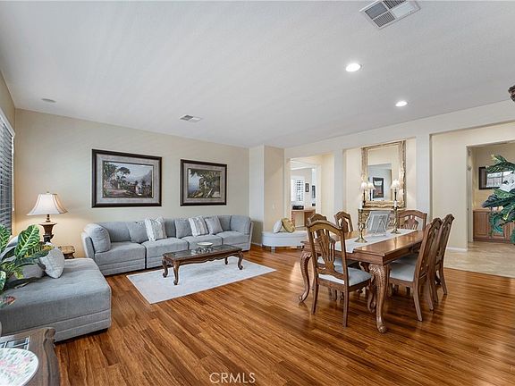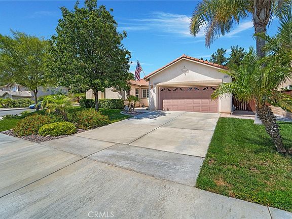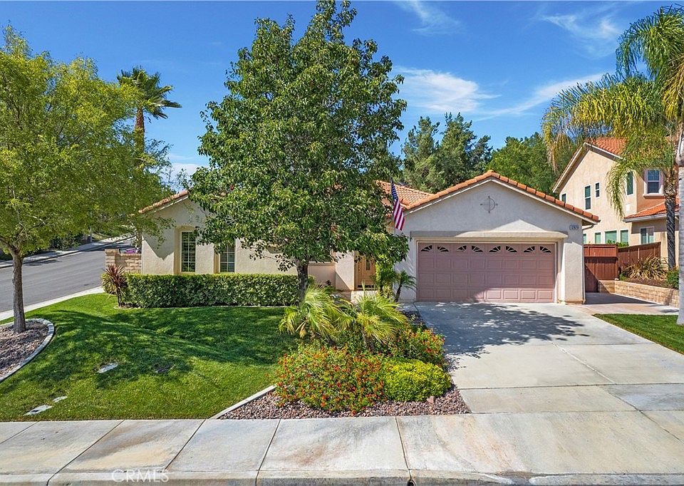 Welcome to this stunning upgraded single level Crowne Hill residence, ideally positioned on an expansive corner lot. This home boasts an abundance of natural light and an inviting open floor plan that creates a spacious atmosphere. The well-appointed kitchen seamlessly connects to the family room, offering direct access to the backyard, making it a perfect setting for hosting gatherings. You'll find an array of modern amenities in the kitchen, including stainless steel appliances, a microwave/convection combo, a french door refrigerator, dishwasher, exquisite granite countertops, and solid wood cabinets with a built-in desk area. The family and living rooms are equipped with surround sound and feature laminate wood flooring. Custom wood shutters, wood blinds, and ceiling fans enhance the overall ambiance. For added convenience, there's a separate laundry room complete with a sink and ample storage space. The master bedroom is a true retreat, featuring an en-suite bathroom with a generously sized walk-in closet. The home includes a dedicated 'Kid's Zone,' which comprises two bedrooms, a living area/playroom, custom-built desk and media cabinets, and a full bathroom with double sinks. This versatile space can also serve as a home office or in-law suite. Situated in the award-winning Temecula school district, this home is conveniently located near the region's finest wineries, shopping destinations, golf courses, casinos, and all the attractions Temecula has to offer. Don't miss the opportunity to experience this exceptional property in person—schedule your viewing today; this is a must-see!
